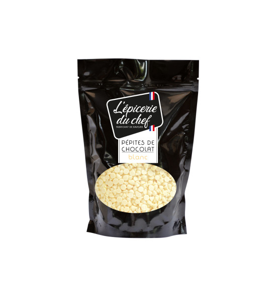 Sachet refermable de pépites de chocolat BLANC 200 gr. Idéal pour vos cupcakes, cookies, etc.
