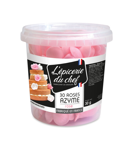 Avec ce pot refermable de 30 roses roses azymes, L'épicerie du chef vous propose des décors en azyme pour embellir et parfaire vos gâteaux, pièces montées, cupcakes...